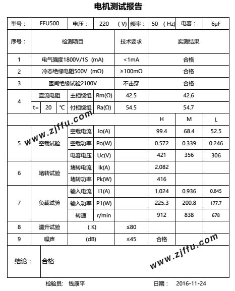 當(dāng)前位置:首頁(yè) >> 新聞咨詢 >> FFU500電機(jī)測(cè)試報(bào)告FFU500電機(jī)測(cè)試報(bào)告 型號(hào):FFU500 電壓:220 (V) 頻率:50 (Hz) 電容:6mF 1、檢測(cè)項(xiàng)目:電氣強(qiáng)度1800V/1S (mA);技術(shù)要求:<1mA;實(shí)測(cè)結(jié)果:合格。 2、檢測(cè)項(xiàng)目:冷態(tài)絕緣電阻500V (mQ);技術(shù)要求:>100mQ;實(shí)測(cè)結(jié)果:合格。 3、檢測(cè)項(xiàng)目:匝間絕緣試驗(yàn)2100V;技術(shù)要求:不擊穿;實(shí)測(cè)結(jié)果:合 …
