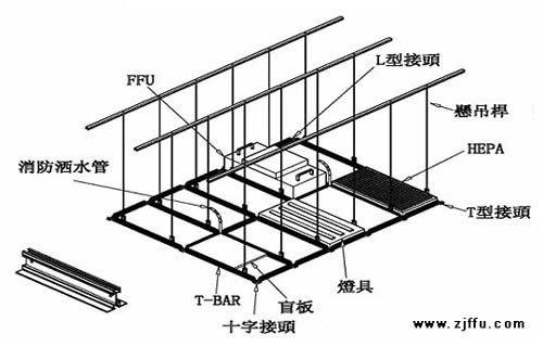 FFU風機吊頂龍骨系統(tǒng)是指用鋁合金做成的,用于潔凈室天花吊頂?shù)闹鞑牧希ㄟ^螺桿與鋁合金相接,用來固定FFU。適用于局部層流系統(tǒng)、FFU系統(tǒng)和不同潔凈級別的空氣凈化系統(tǒng)。