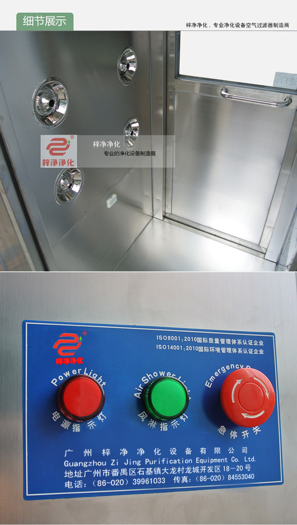 工作原理:用于人員出入,防止不潔凈氣流進入潔凈區(qū),工作區(qū)內設置吹淋凈化處理裝置,消除人、物表面附著塵埃,同時具有氣閘作用,配合潔凈空調系統確保潔凈室達到所需潔凈度。