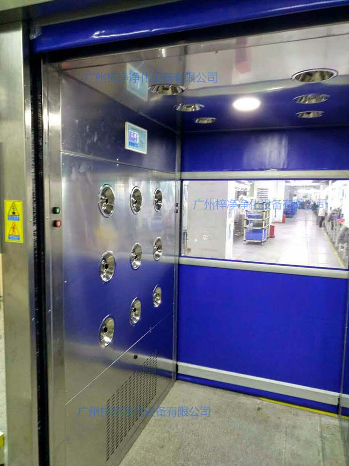 4、全自動(dòng)紅外感應(yīng)吹淋,“歐姆龍”紅外感應(yīng)器,正泰中間繼電器,單向通道貨淋室,從非潔凈區(qū)進(jìn)入,關(guān)門后紅外線感應(yīng)有人就吹淋,吹淋時(shí)雙門自動(dòng)鎖閉,吹淋后入門鎖閉,由潔凈區(qū)出去時(shí)經(jīng)過(guò)貨淋室不吹淋以節(jié)省能源;