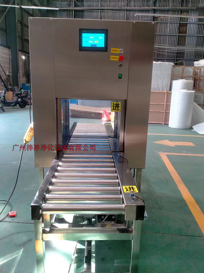 1、貨物進入前端輸送帶→前端升降門自動開啟→貨物進入傳遞窗內(nèi)→升降門自動關(guān)閉→紫外線燈手動控制開關(guān)→設(shè)定滅菌時間完畢→后端升降門自動打開貨物完全通過→后端升降門自動關(guān)閉→貨物在未端輸送帶停止→待貨物取走后方可開啟下一次輸送。