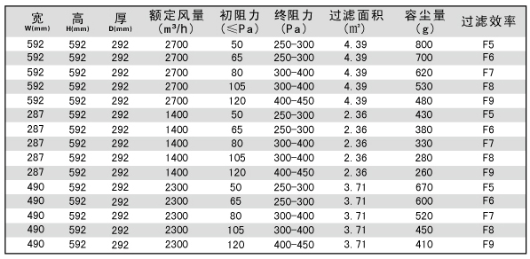 用戶選購指南-箱式中效過濾器技術(shù)參數(shù)