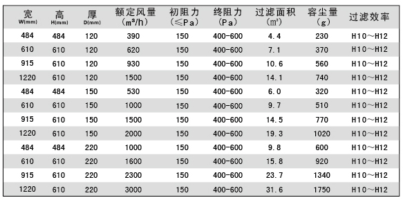 用戶(hù)選購(gòu)指南-有隔板亞高效過(guò)濾器參數(shù)