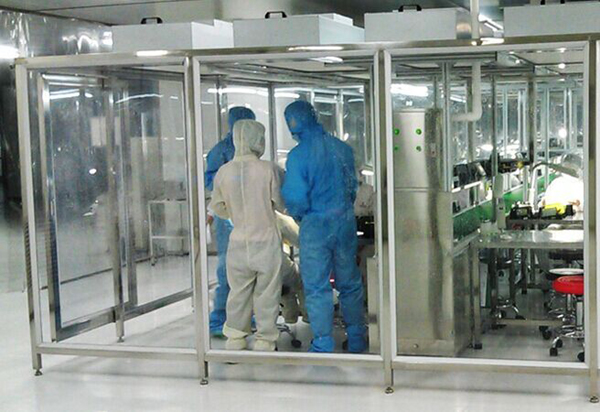 潔凈棚采用工業(yè)鋁材(或不銹鋼方通、鐵方通噴塑)作為框架,風(fēng)機(jī)濾網(wǎng)機(jī)組(FFU)送風(fēng),四周懸掛防靜電垂簾(或鋼化玻璃),其內(nèi)部?jī)艋?jí)別可達(dá)到100-10000級(jí)。適用于操作區(qū)內(nèi)局部?jī)艋?jí)別要求高的區(qū)域。