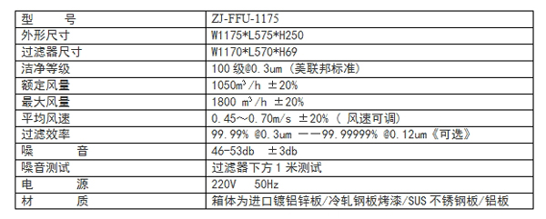 (ZJ-FFU-1175技術(shù)參數(shù))